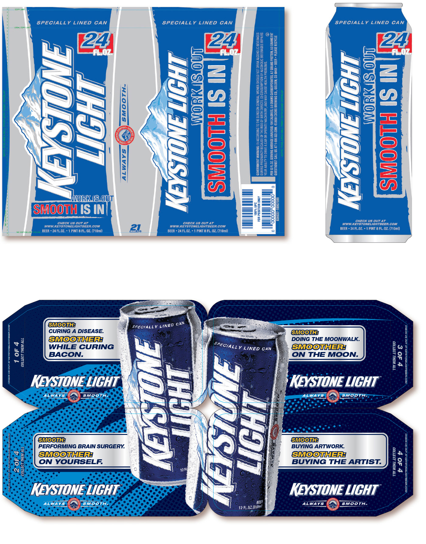 KEYSTONE LIGHT Laying out designs for promotional cans, outer packaging and limited edition interior liners.