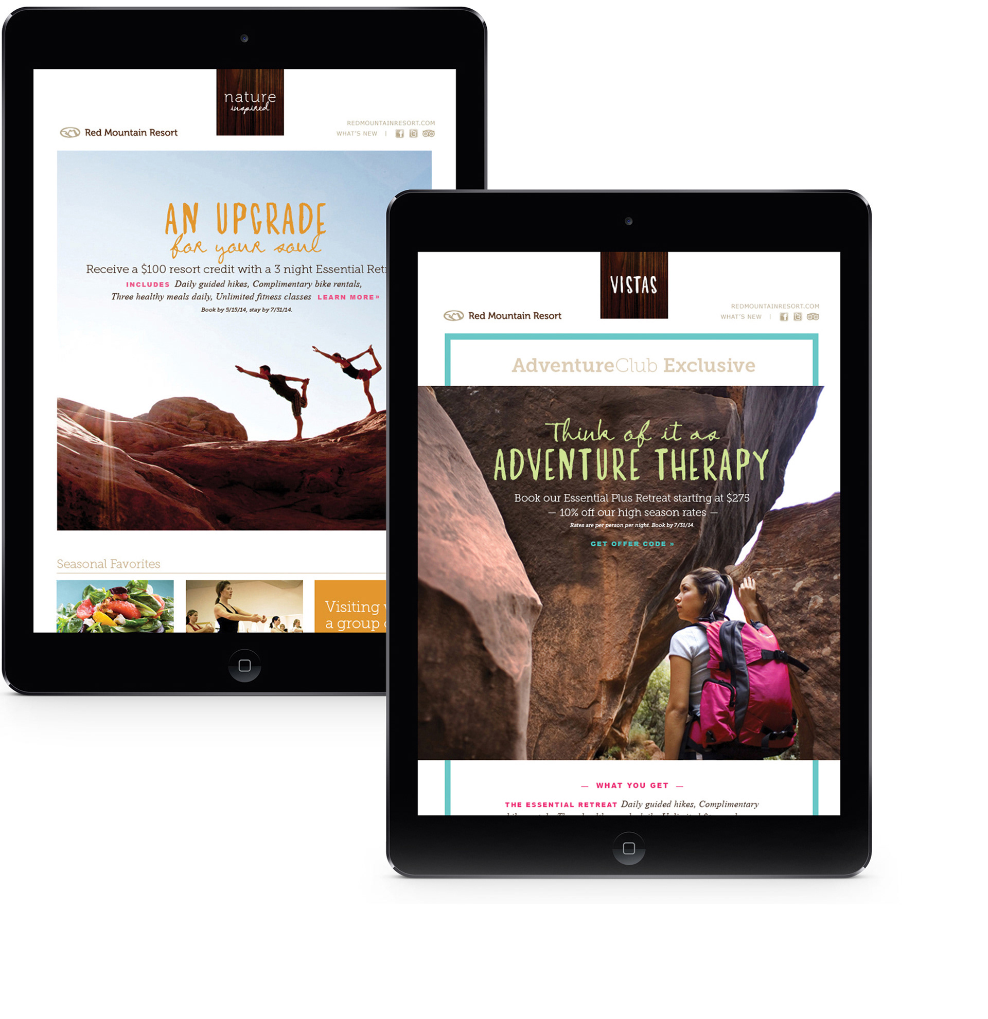 RED MOUNTAIN RESORT Creating fresh and lively layouts with engaging photography and headlines for monthly electronic newsletters outlining special deals and promotional offers.